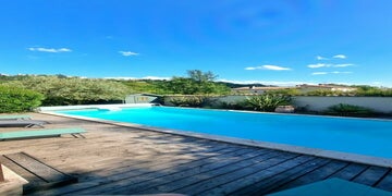 Autour de la piscine, des bains de soliel vous attendent pour la sieste, la lecture ou tout simplement profiter du calme. Le grand jardin privatif et les places de parking sur la propriété complètent les atouts de cette maison.
