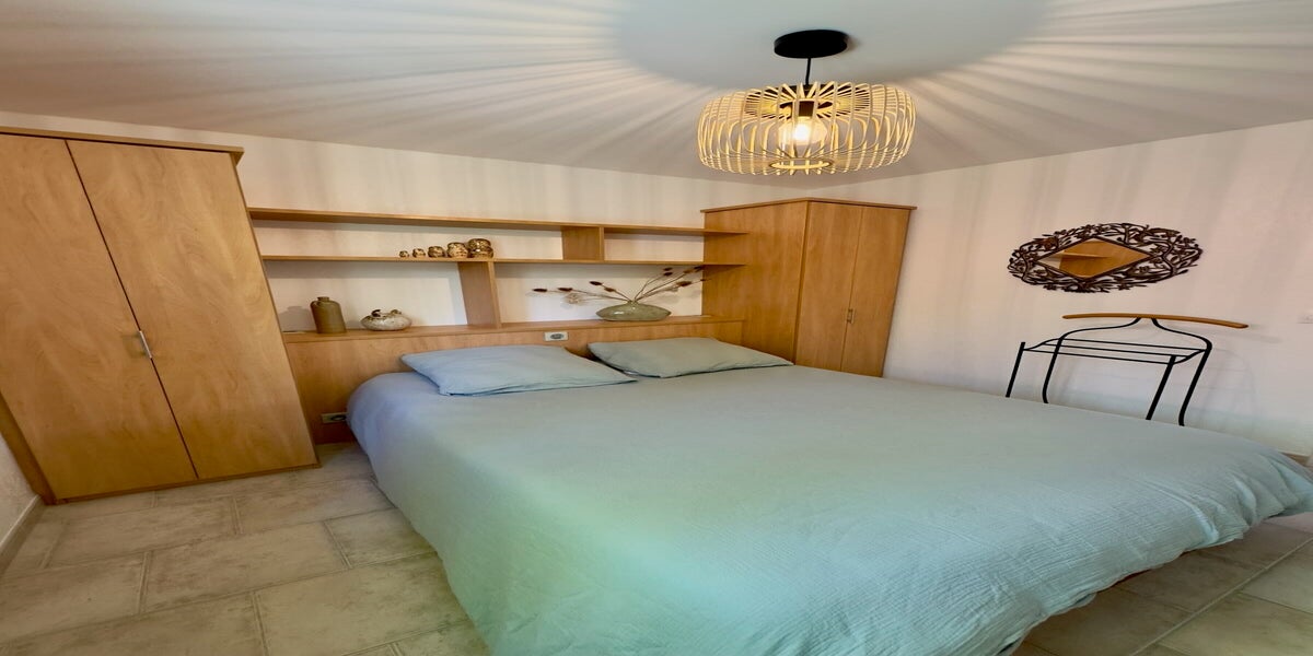 Une chambre lit double (140), une chambre lit double (140) avec une mezzanine mansardée composée de 2 lits en 120.